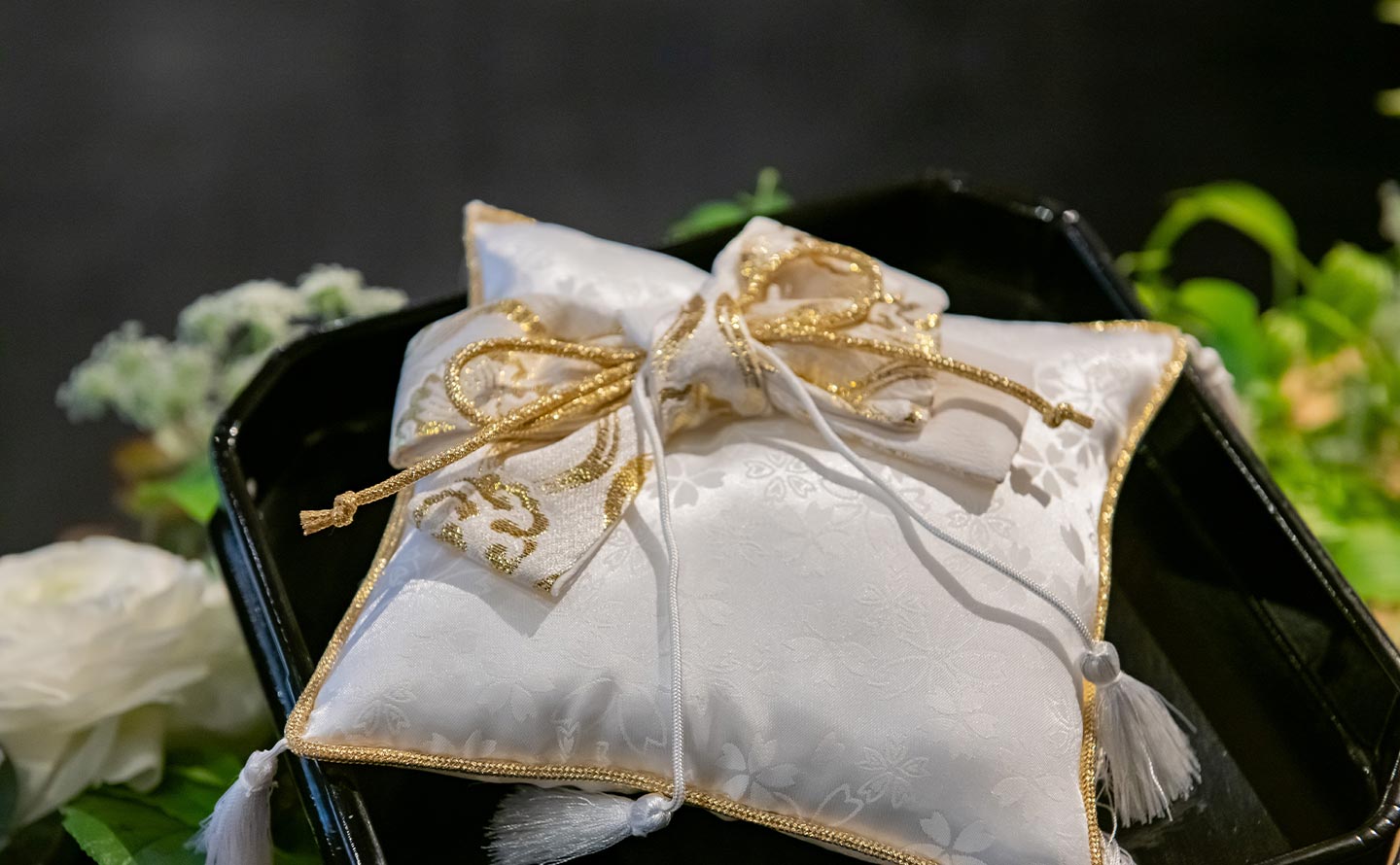 梅結びは「固く結ばれた絆」という意味があります。梅結びの前で永遠の契りを交わすことでほどけることのないお二人の絆が結ばれます。